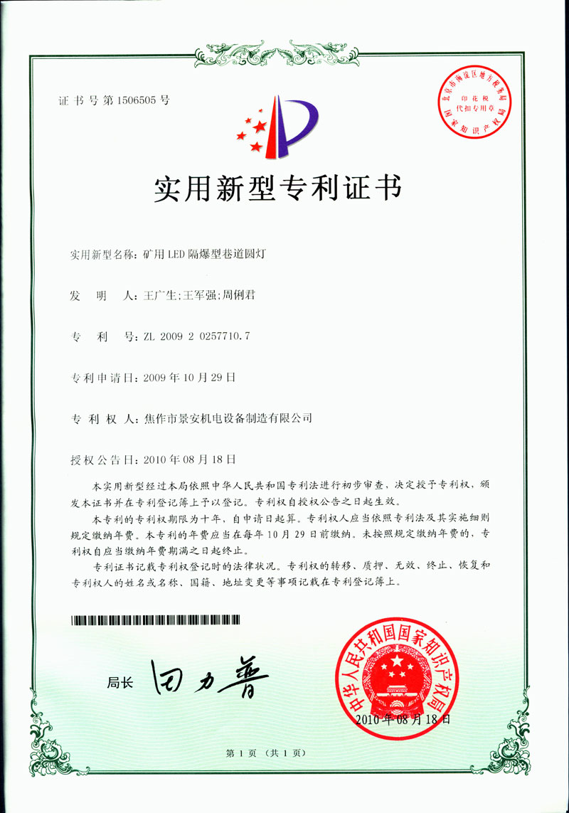 焦作景安公司始終堅(jiān)持“以科技為先導(dǎo),以市場(chǎng)為導(dǎo)向”的發(fā)展戰(zhàn)略,不斷進(jìn)行新產(chǎn)品的研制和開發(fā),在國家“六五”到“九五”期間,承擔(dān)和參與了國家多項(xiàng)科技攻關(guān)項(xiàng)目。并被中國電器工業(yè)協(xié)會(huì)評(píng)定為“質(zhì)量可信產(chǎn)品”。特別是在礦用防爆燈領(lǐng)域,礦用隔爆型半導(dǎo)體(LED)照明燈具,2008年列入國家火炬計(jì)劃,獲2009年河南省工業(yè)和信息化廳的科技成果二等獎(jiǎng),并擁有多項(xiàng)國家專利。 |